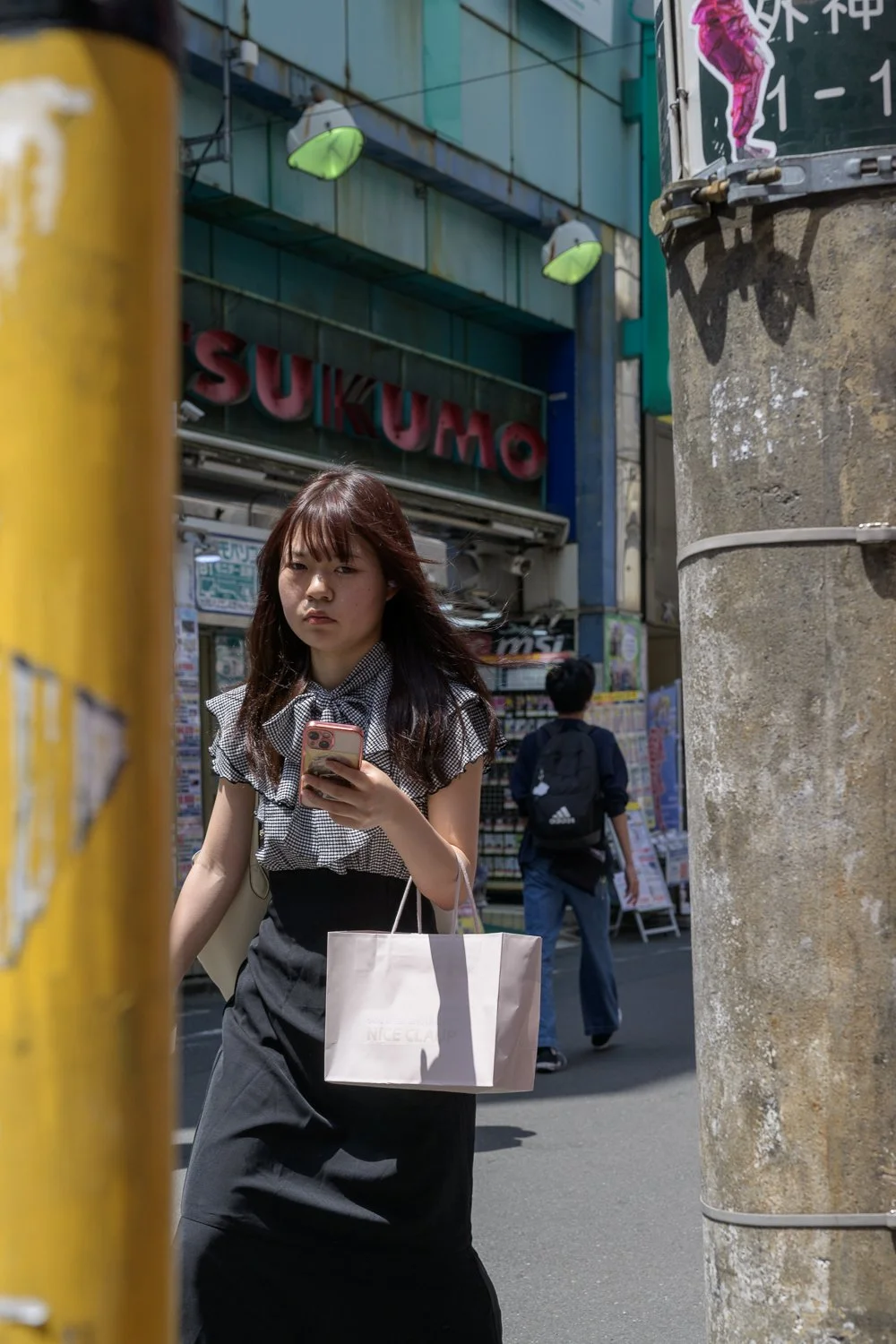 For wahtever reason I found people in Akiba hyper aware. This makes it a great place for street photography. People more often than not make eye contact providing a great chance to practice. It can be difficult to press the sutter button when eye contact is made. It takes practice to get over the fear and even more practice make that a meaningful moment.